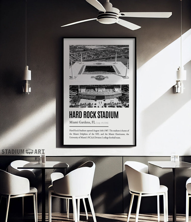 HardRock Stadium Print, Miami Dolphins Poster/Canvas, Aerial View, B&W Modern Art, Football Wall Art Decor, Game Day Keepsake