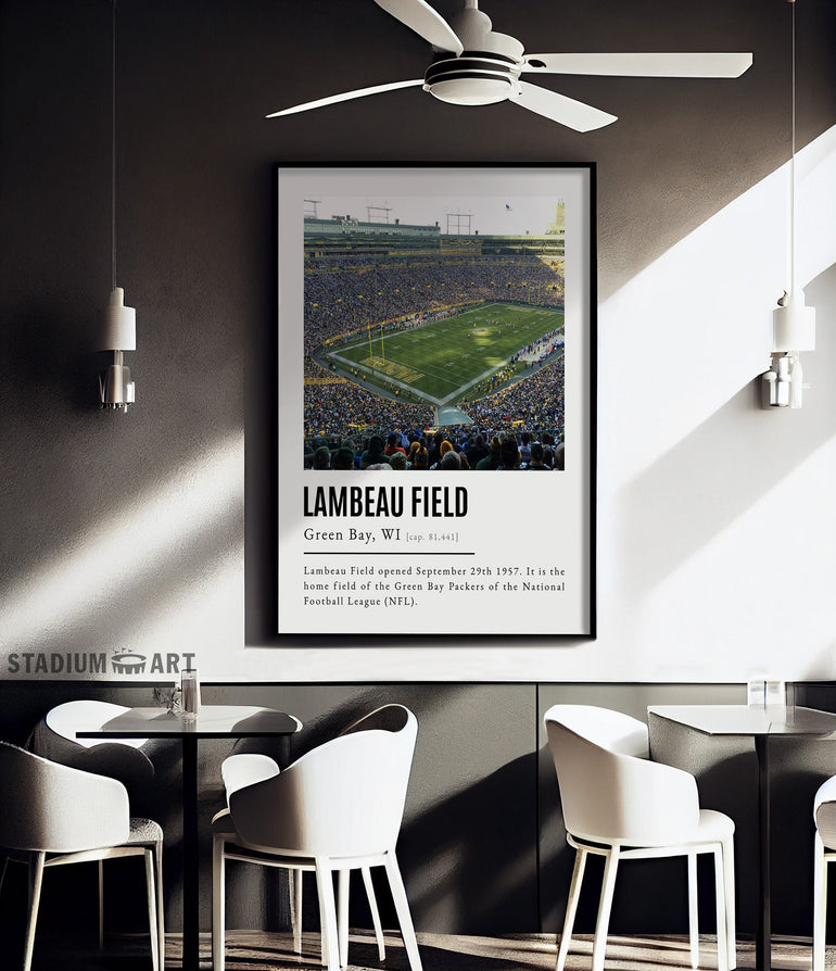 Lambeau Field Print, Green Bay Packers Poster/Canvas, Seat View, Modern Art, Football Wall Art Decor, Game Day Keepsake