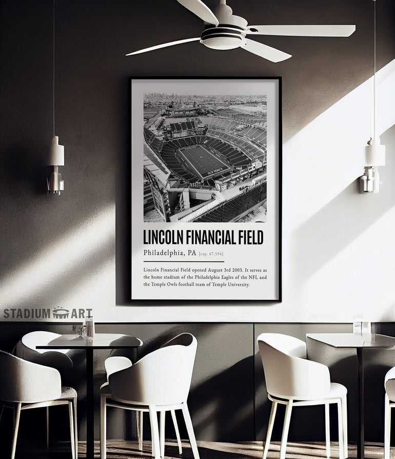 Lincoln Financial Field Print, Philadelphia Eagles Poster/Canvas, Aerial View, B&W Modern Art, Football Wall Art Decor, Game Day Keepsake