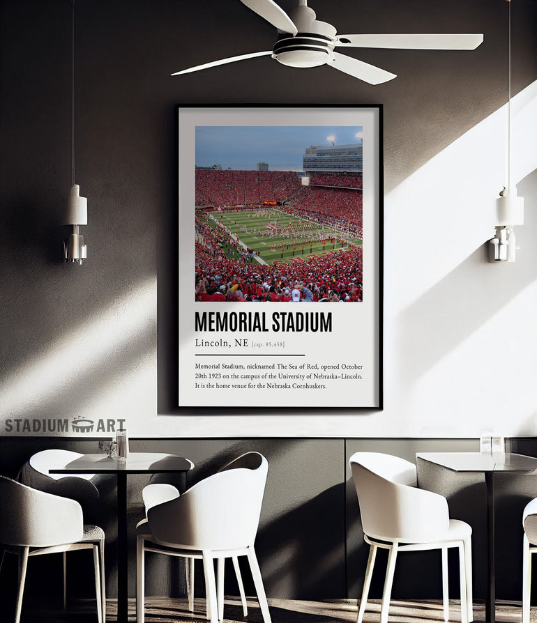 Memorial Stadium Print, Nebraska Cornhuskers Poster/Canvas, Seat View, Modern Football Wall Art Decor, Game Day Keepsake