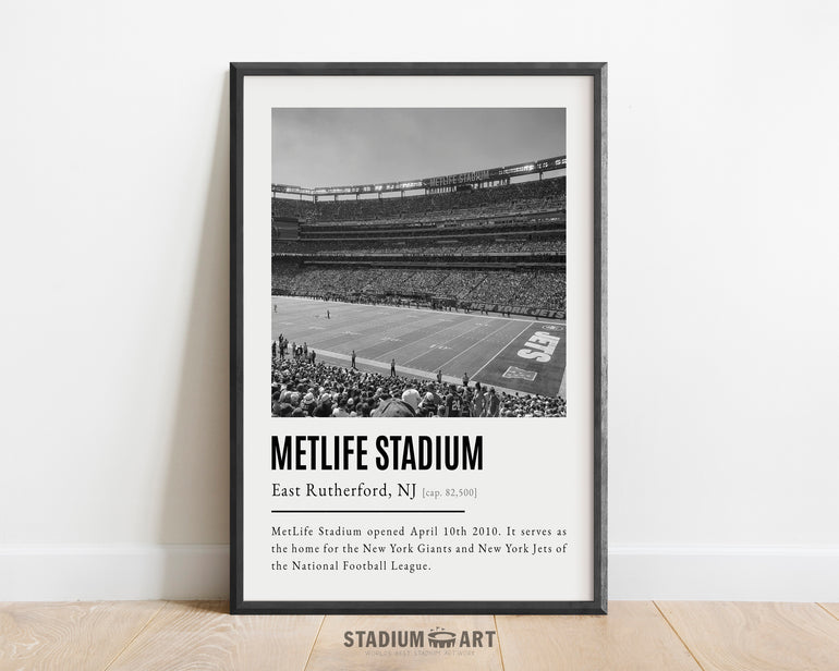 MetLife Stadium Print, New York Giants/Jets Poster/Canvas, Seat View, B&W Modern Football Wall Art Decor, Game Day Keepsake
