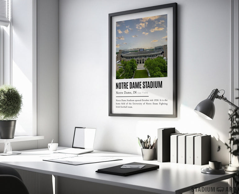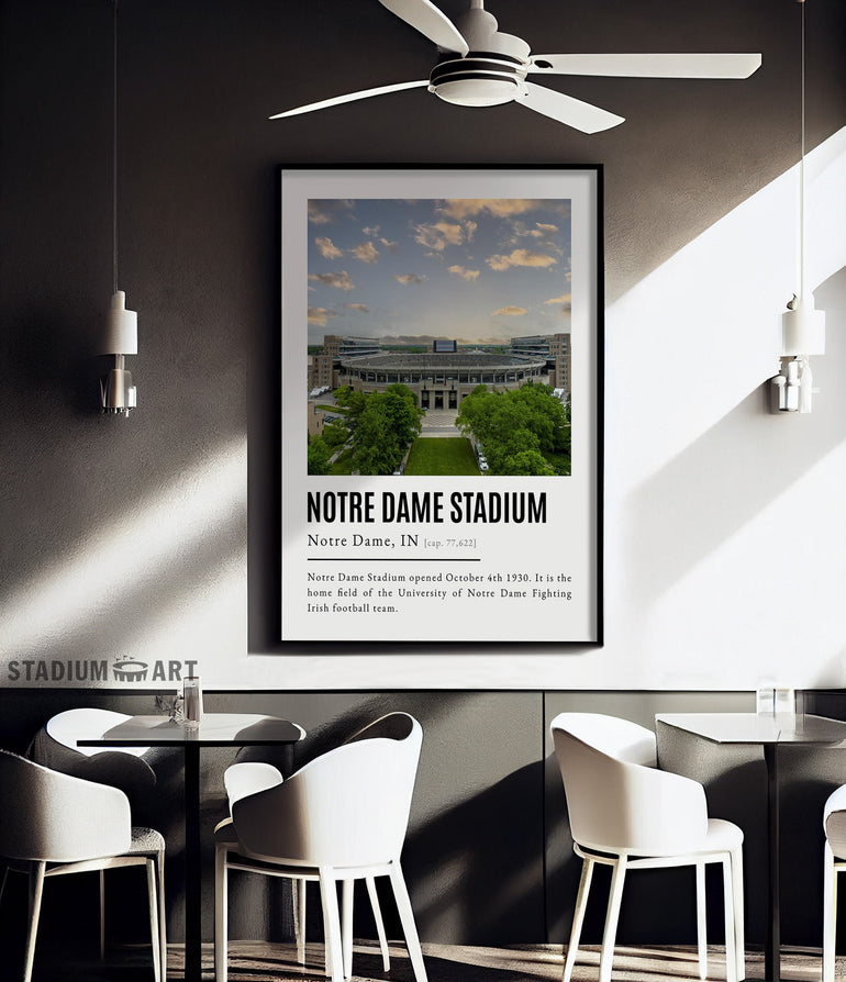 Notre Dame Stadium Print, Notre Dame Fighting Irish Poster/Canvas, Aerial View (v2), Modern Football Wall Art Decor, Game Day Keepsake