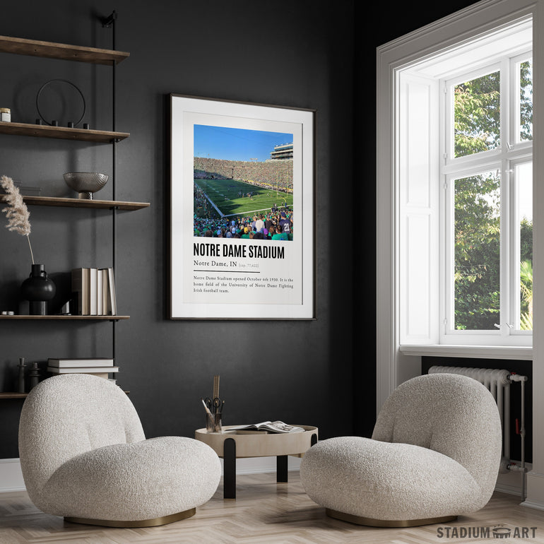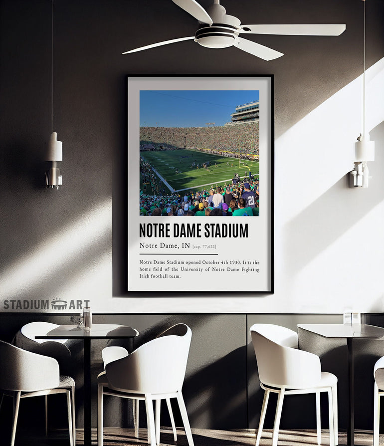 Notre Dame Stadium Print, Notre Dame Fighting Irish Poster/Canvas, Seat View, Modern Football Wall Art Decor, Game Day Keepsake