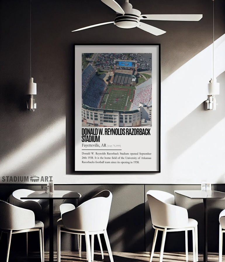 Razorback Stadium Print, Arkansas Razorbacks Poster/Canvas, Aerial View, Modern Art, Football Wall Art Decor, Game Day Keepsake