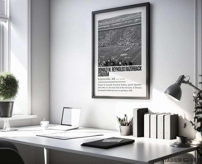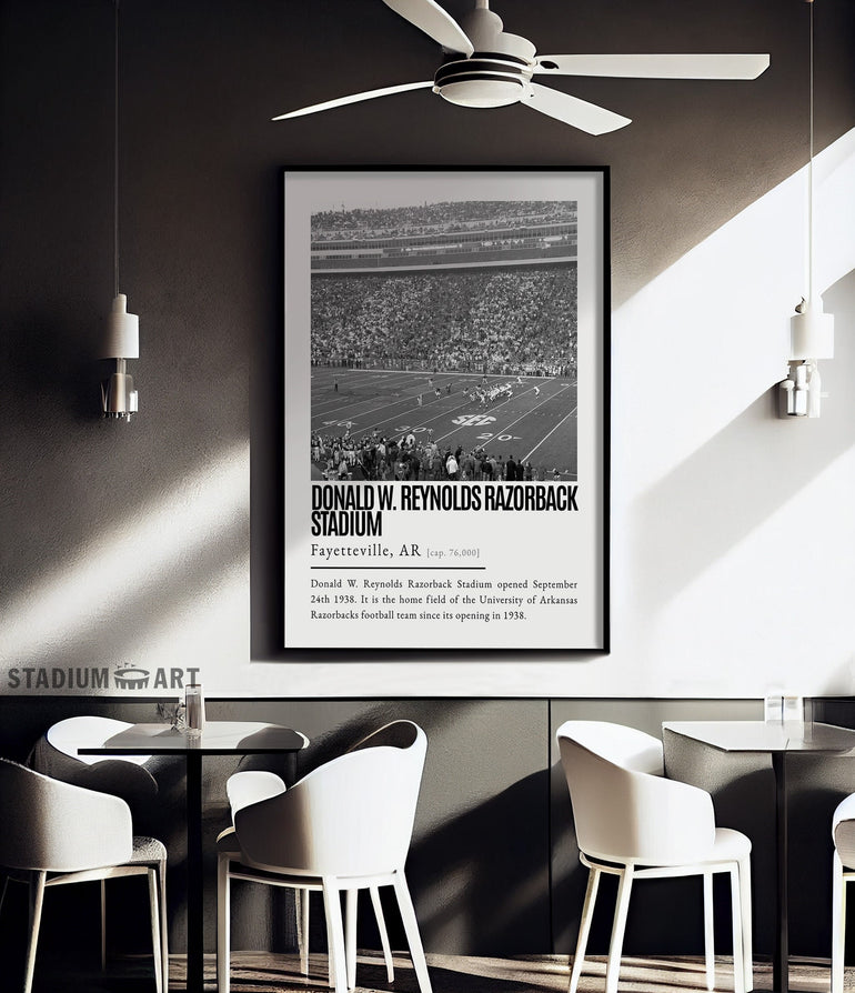 Razorback Stadium Print, Arkansas Razorbacks Poster/Canvas, Seat View (v2), B&W Modern Art, Football Wall Art Decor, Game Day Keepsake