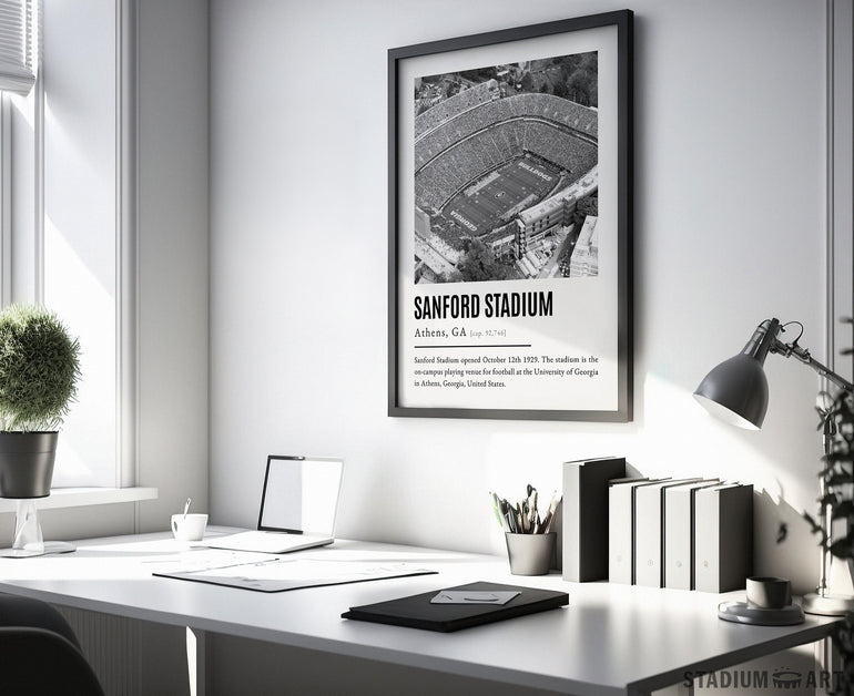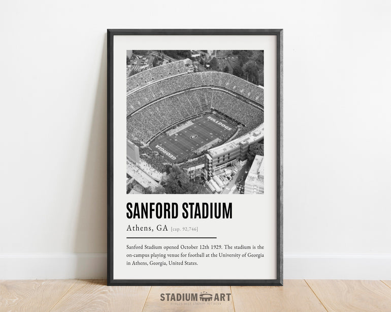 Sanford Stadium Print, Georgia Bulldogs Poster/Canvas, Aerial View, B&W Modern Football Wall Art Decor, Game Day Keepsake