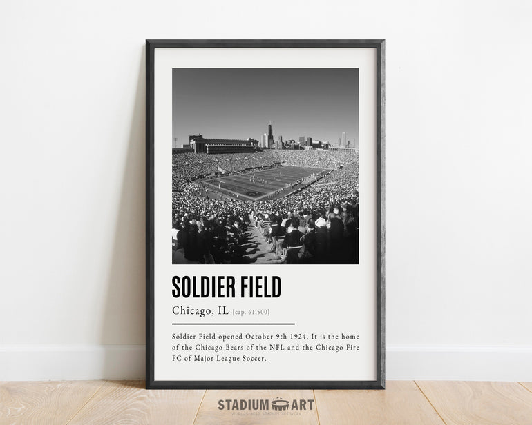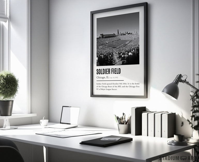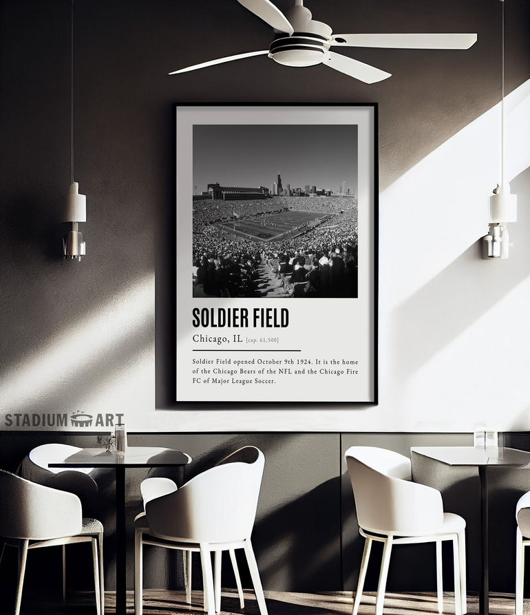 Soldier Field Print, Chicago Bears Poster/Canvas, Seat View, B&W Modern Football Wall Art Decor, Game Day Keepsake