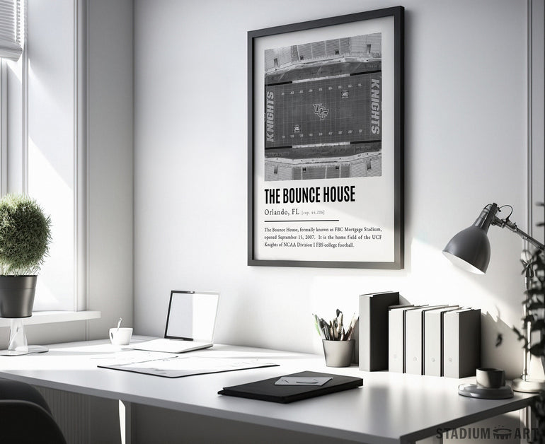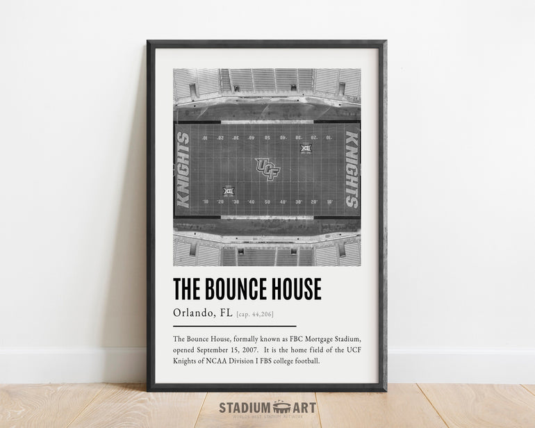 The Bounce House Print, UCF Knights Poster/Canvas, Aerial (Top) View, B&W Modern Football Wall Art Decor, Game Day Keepsake