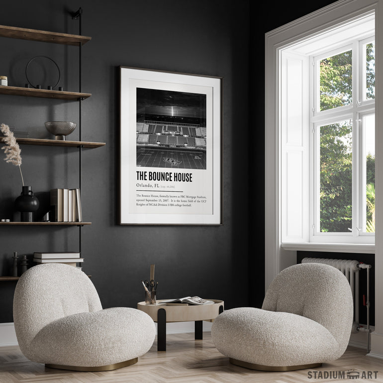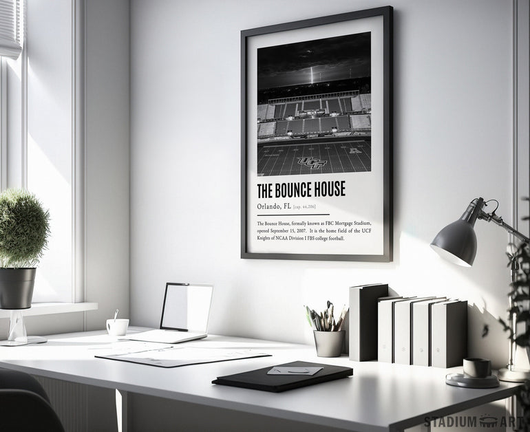 The Bounce House Print, UCF Knights Poster/Canvas, Seat View 'Rocket Launch', B&W Modern Football Wall Art Decor, Game Day Keepsake
