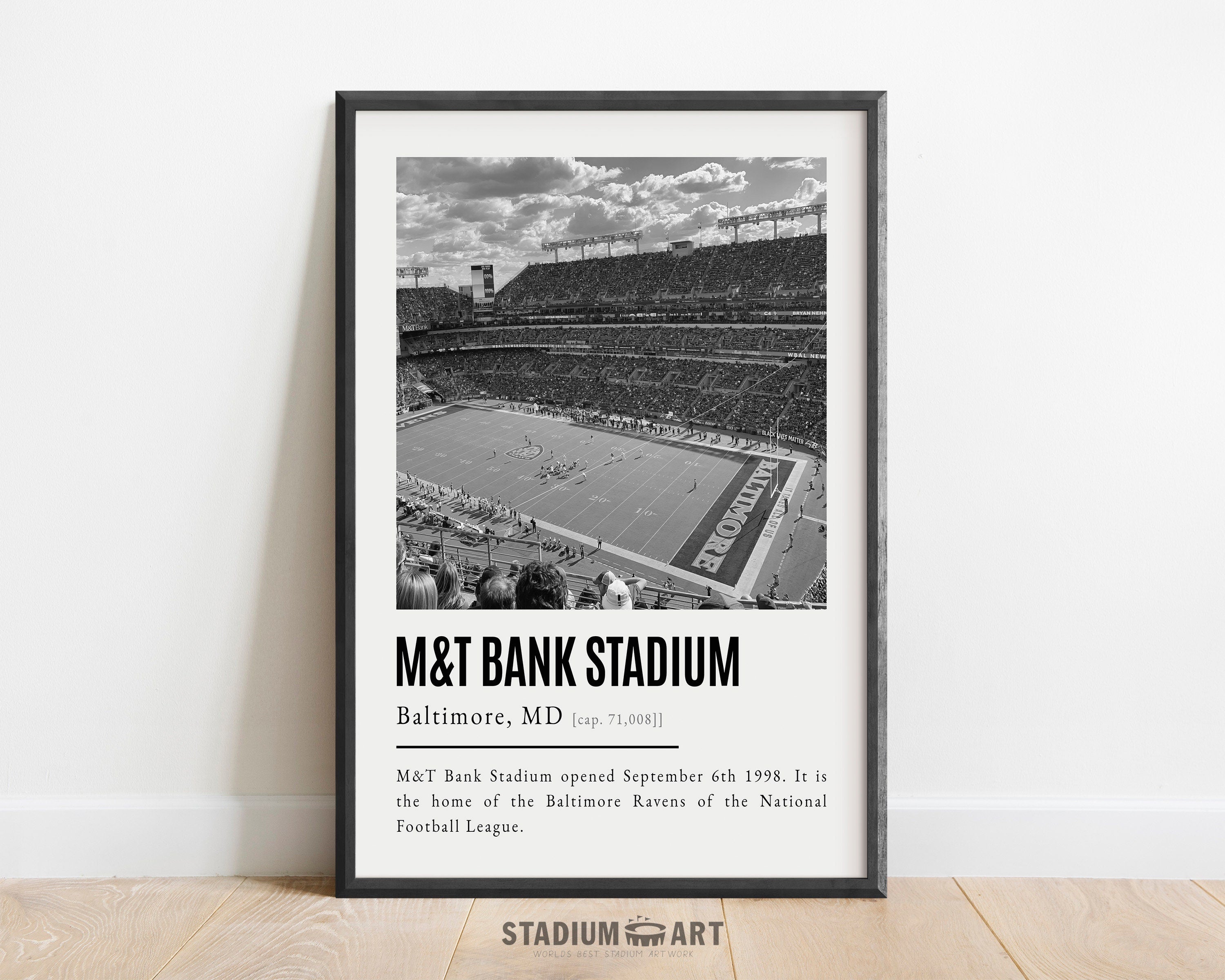 MT Bank Stadium Print, Baltimore Ravens Poster/Canvas, Seat View, B&W Modern Football Wall Art Decor, Game Day Keepsake