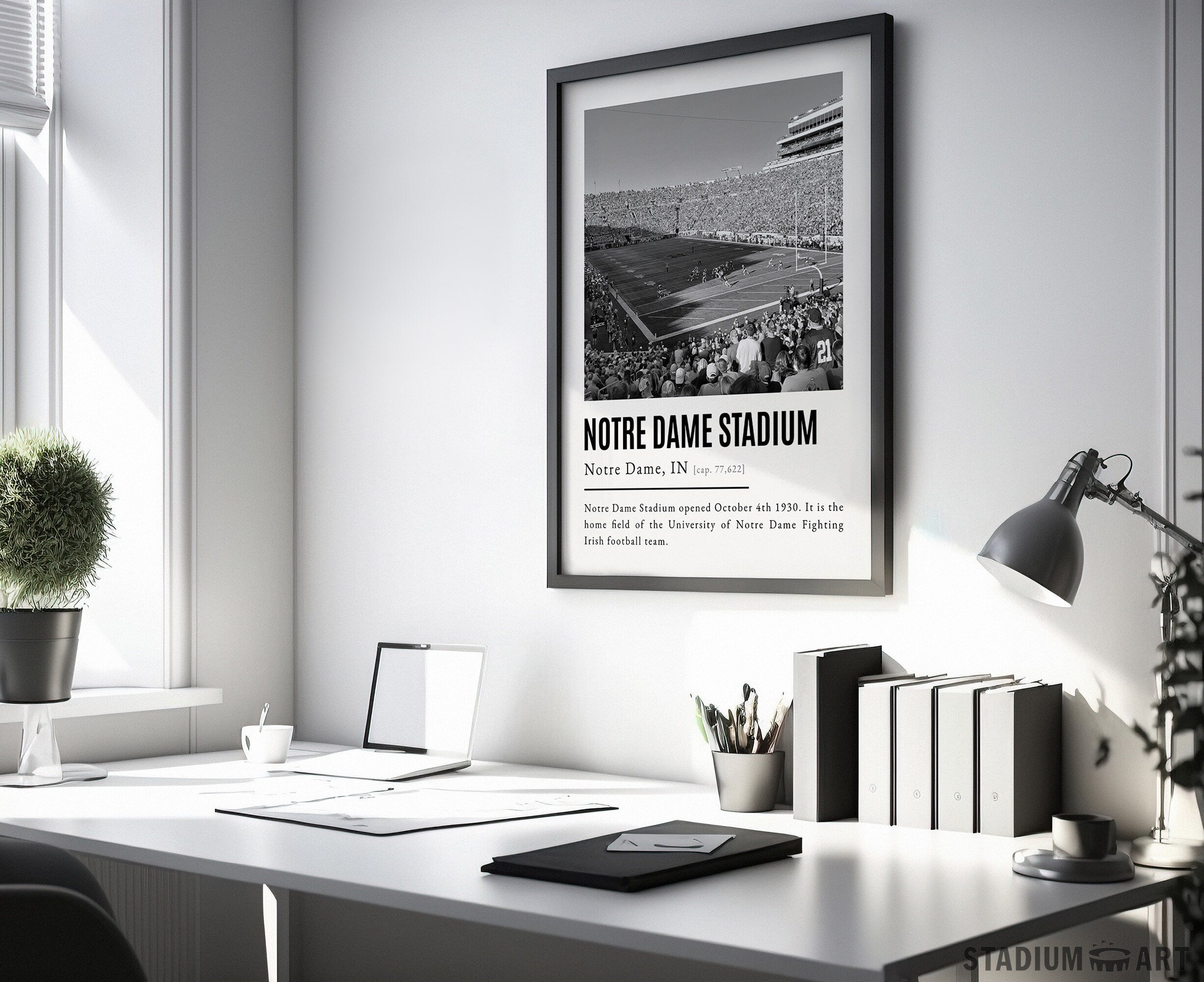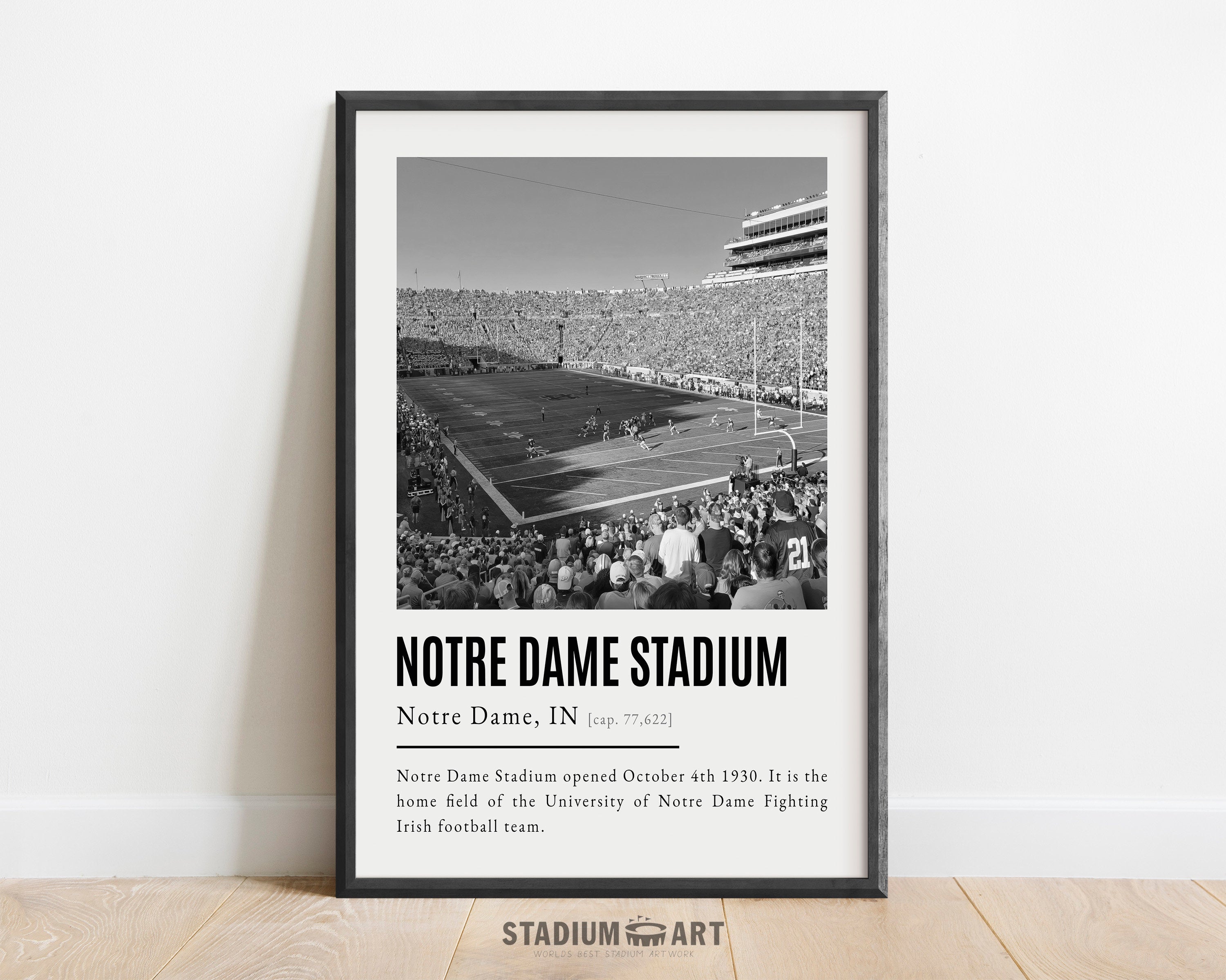 Notre Dame Stadium Print, Notre Dame Fighting Irish Poster/Canvas, Seat View, B&W Modern Football Wall Art Decor, Game Day Keepsake