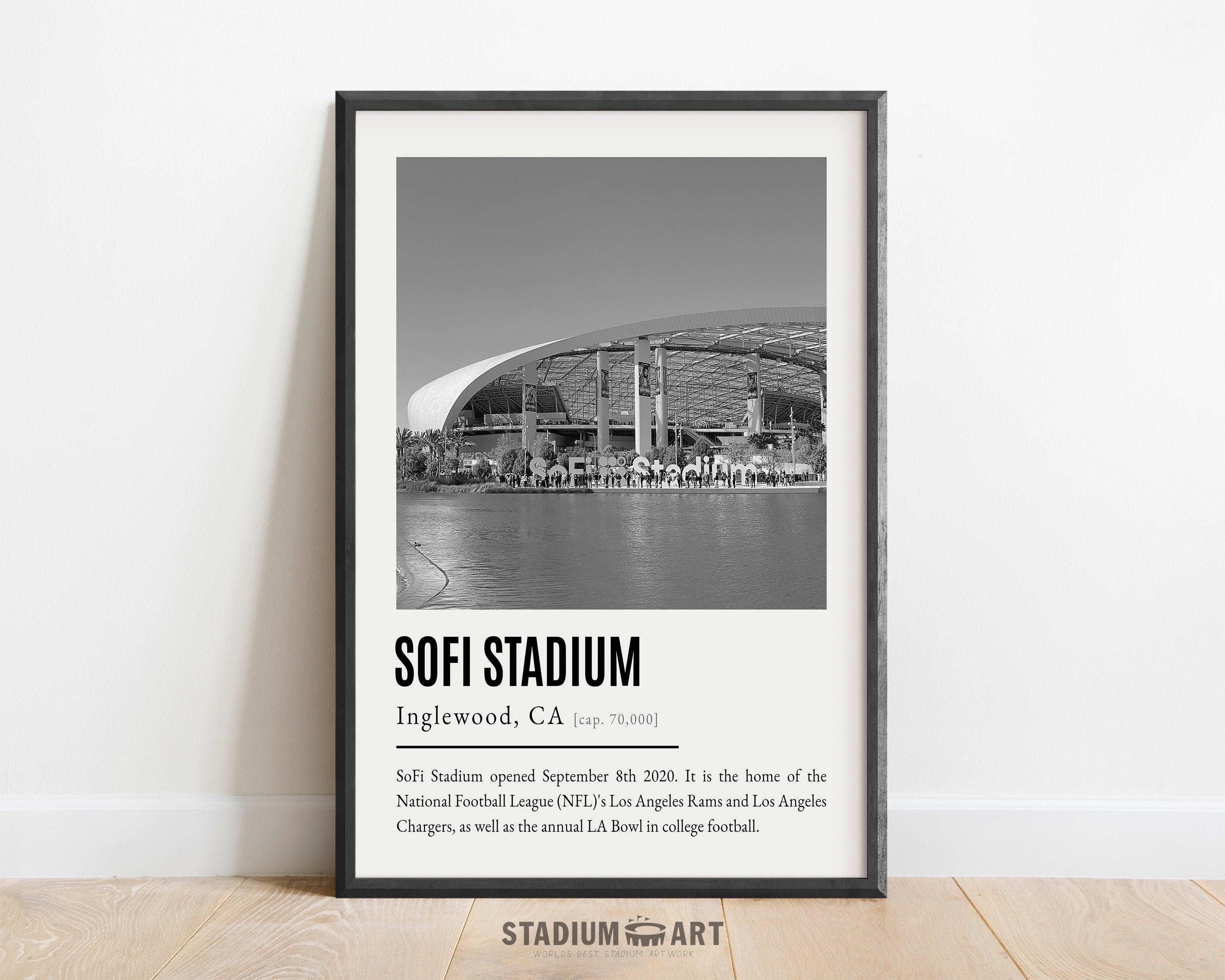 SoFi Stadium Print, Los Angeles Rams/Chargers Poster/Canvas, Seat View, B&W Modern Football Wall Art Decor, Game Day Keepsake