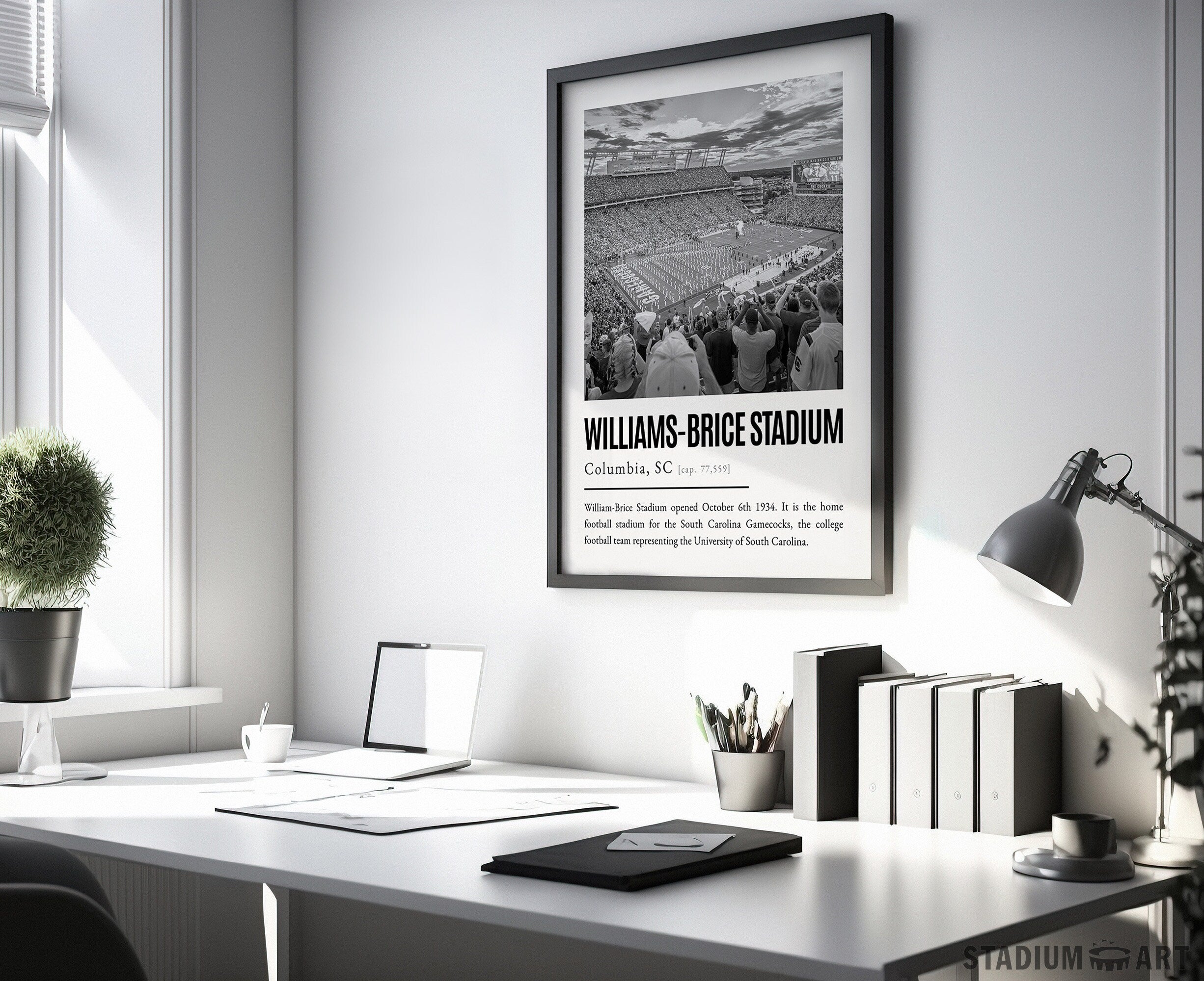 Williams-Brice Stadium Print, South Carolina Gamecocks Poster/Canvas, Aerial View, B&W Modern Football Wall Art Decor, Game Day Keepsake