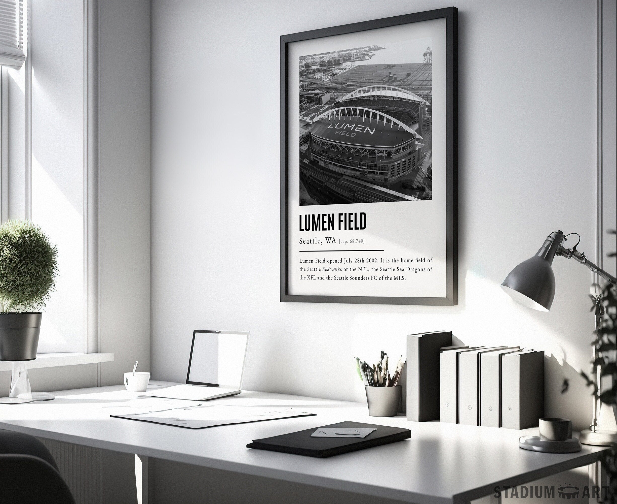 Lumen Field Print, Seattle Seahawks Poster/Canvas, Seat View, B&W Modern Football Wall Art Decor, Game Day Keepsake
