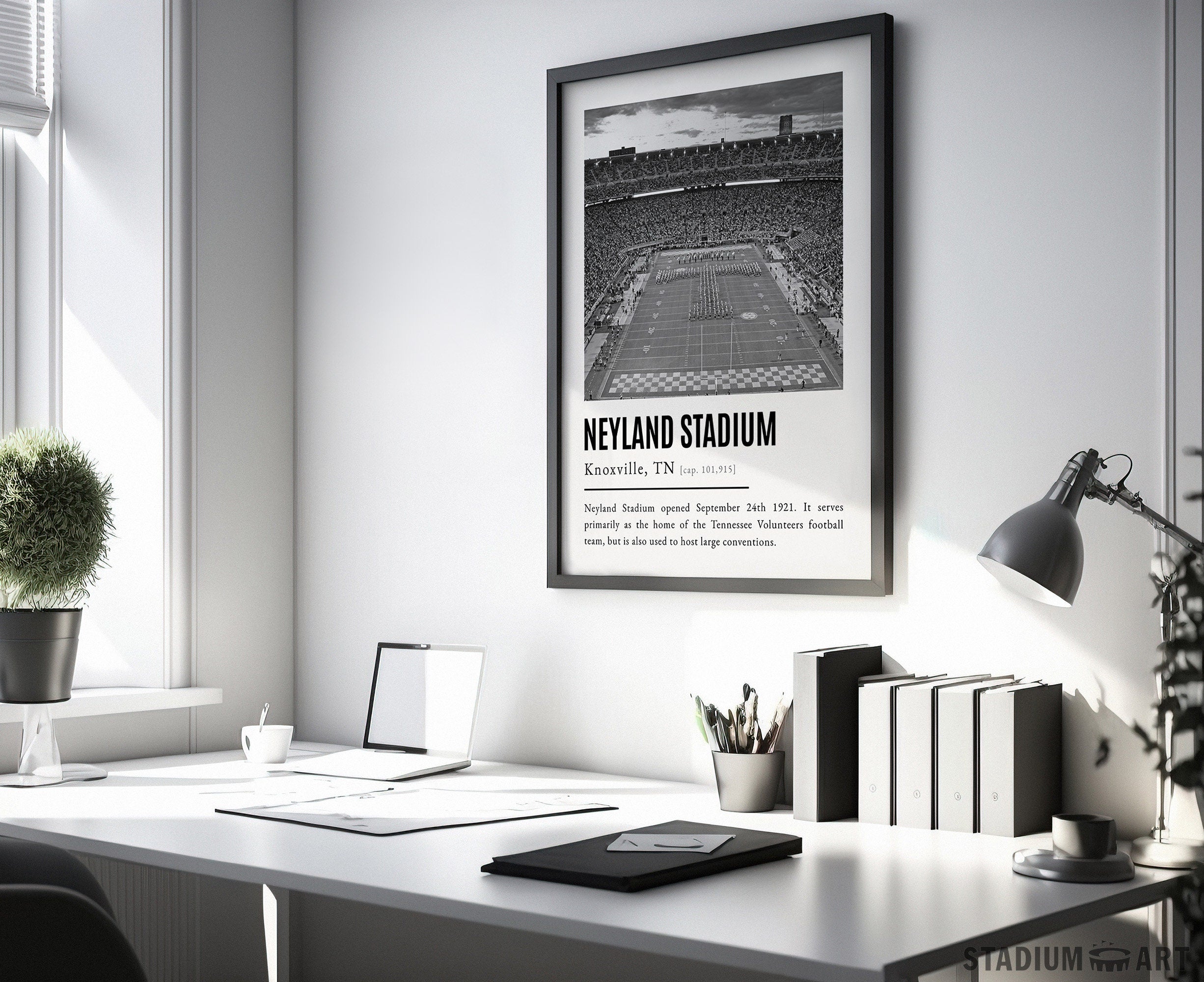 Neyland Stadium Print, Tennessee Volunteers Poster/Canvas, Seat View, B&W Modern Football Wall Art Decor, Game Day Keepsake