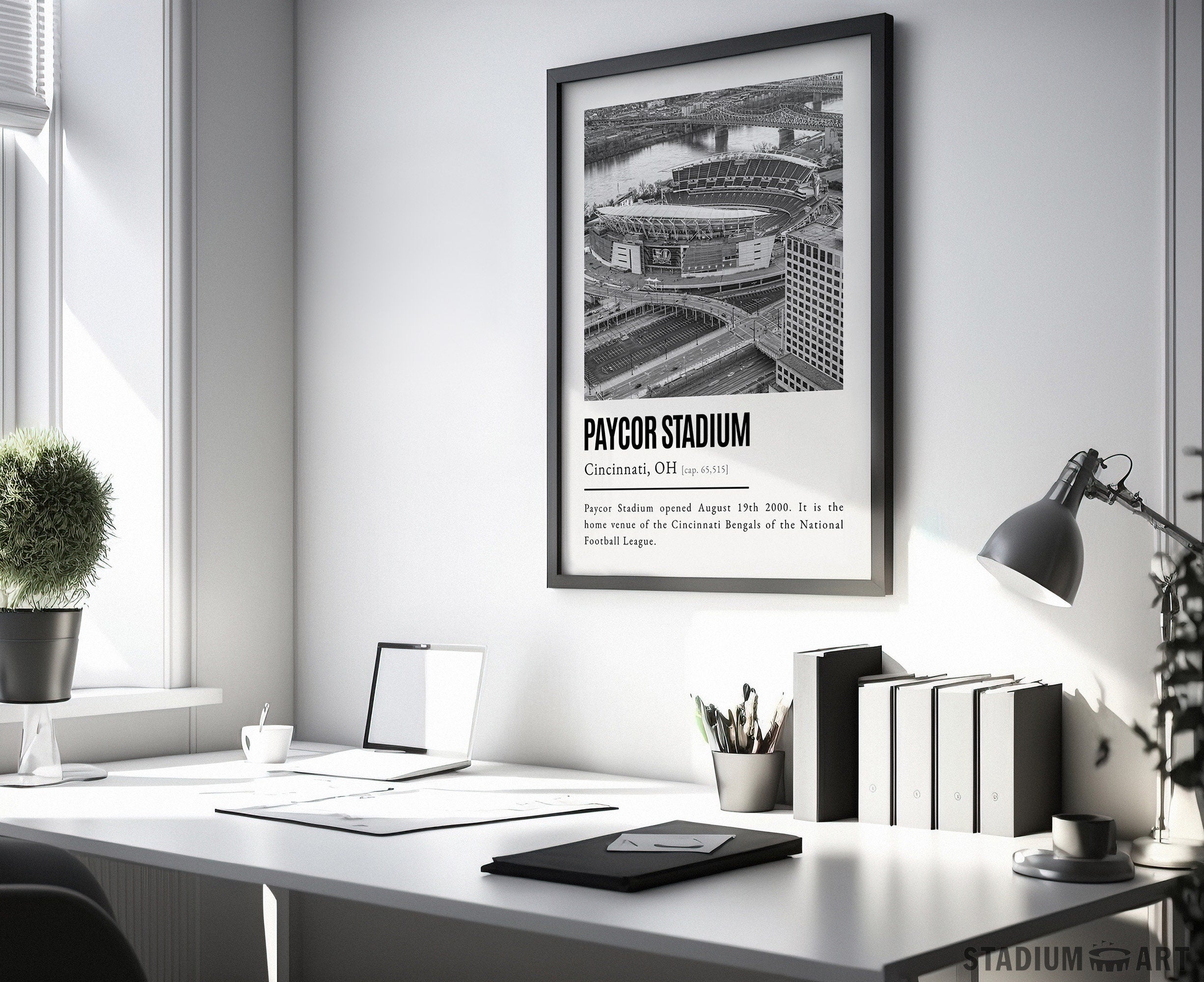 Paycor Stadium Print, Cincinnati Bengals Poster/Canvas, Aerial View, B&W Modern Football Wall Art Decor, Game Day Keepsake