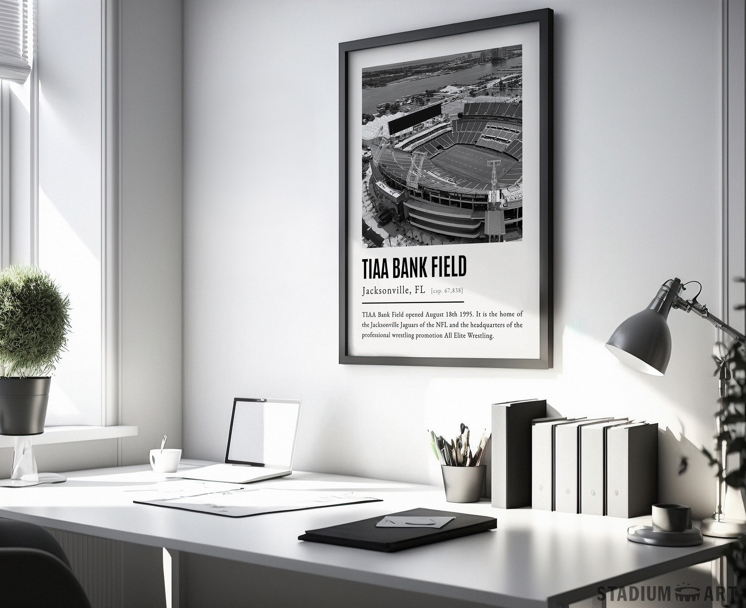 TIAA Bank Field Print, Jacksonville Jaguars Poster/Canvas, Seat View, B&W Modern Football Wall Art Decor, Game Day Keepsake