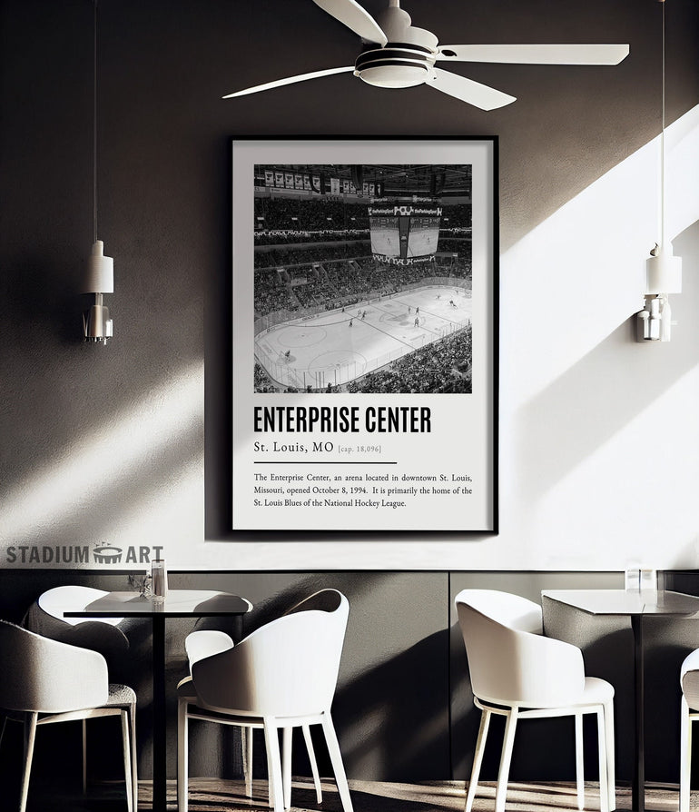 Enterprise Center Print, St. Louis Blues Poster/Canvas, Seat View, B&W Modern Art, Hockey Wall Art Decor, Game Day Keepsake