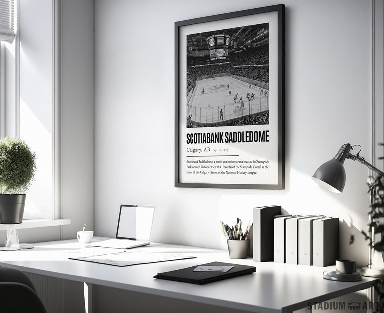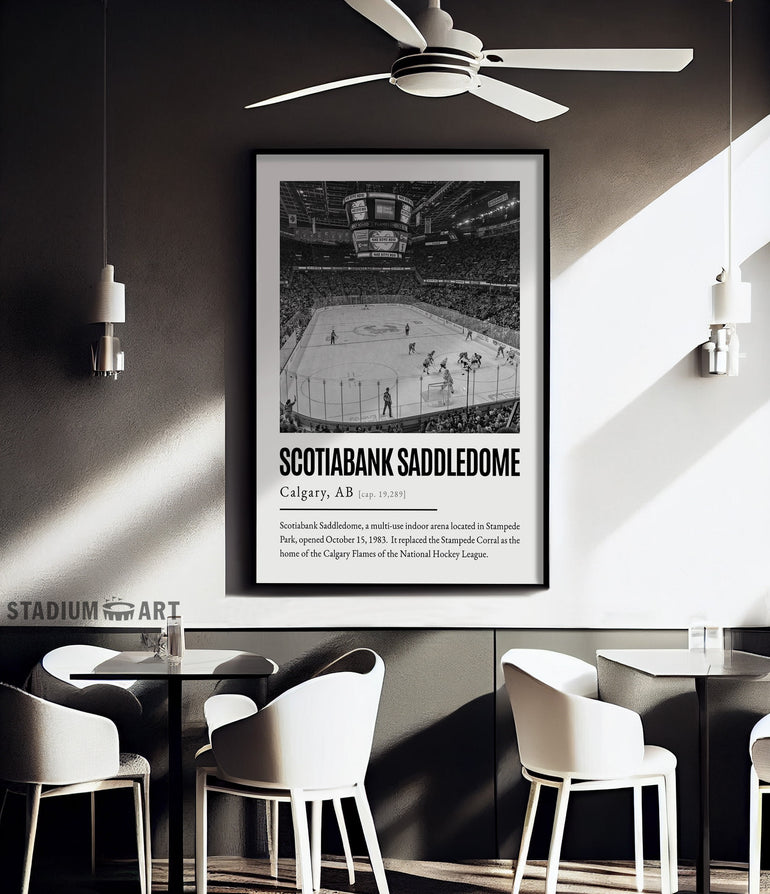 Scotiabank Saddledome Print, Calgary Flames Poster/Canvas, Seat View, B&W Modern Art, Hockey Wall Art Decor, Game Day Keepsake