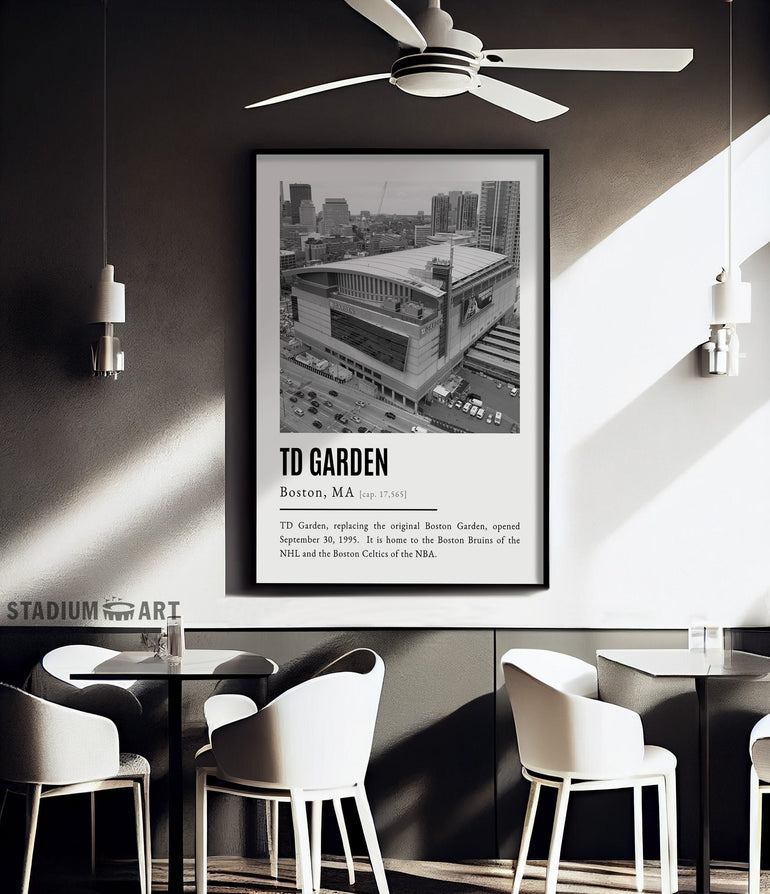 TD Garden Print, Boston Bruins Poster/Canvas, Aerial View, B&W Modern Art, Hockey Wall Art Decor, Game Day Keepsake