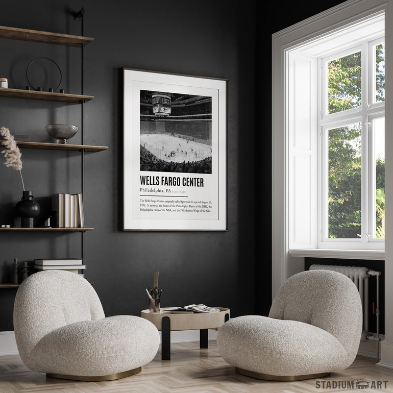 Wells Fargo Center Print, Philadelphia Flyers Poster/Canvas, Seat View, B&W Modern Art, Hockey Wall Art Decor, Game Day Keepsake