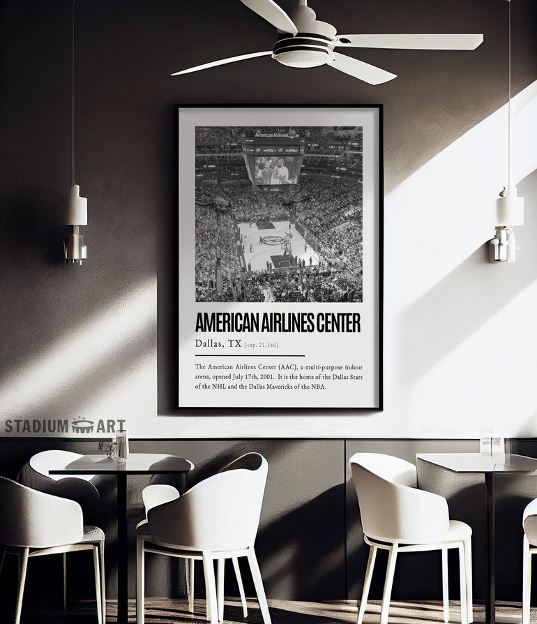 American Airlines Center Print, Dallas Mavericks Poster/Canvas, Seat View, B&W Modern Art, Basketball Home Decor, Game Day Keepsake