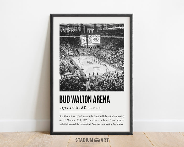Bud Walton Arena Print, Arkansas Razorbacks Poster/Canvas, Seat View, B&W Modern Art, Basketball Home Decor, Game Day Keepsake