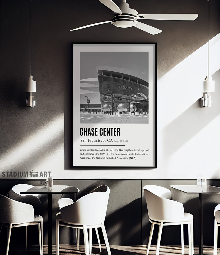 Chase Center Print, Golden State Warriors Poster/Canvas, Exterior Front View, B&W Modern Art, Basketball Home Decor, Game Day Keepsake