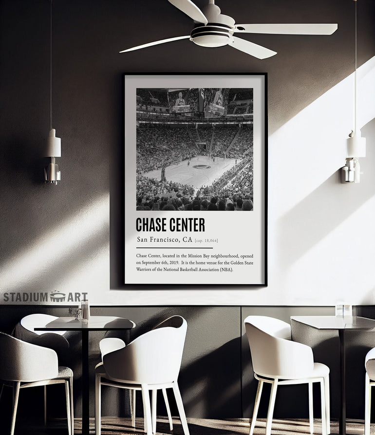 Chase Center Print, Golden State Warriors Poster/Canvas, Seat View, B&W Modern Art, Basketball Home Decor, Game Day Keepsake