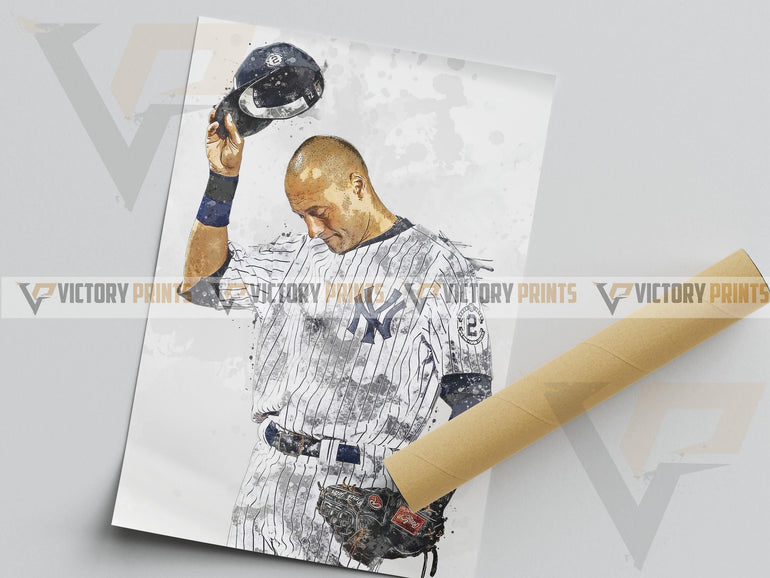 Derek Jeter Hat Tip Poster/Canvas | Baseball Man Cave Art, Sports Room Decor, Digital Files Available