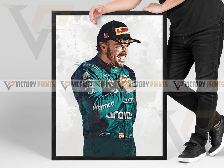 Fernando Alonso Bahrain 2023 Poster/Canvas | Man Cave Art, Sports Room Decor, Digital Files Available