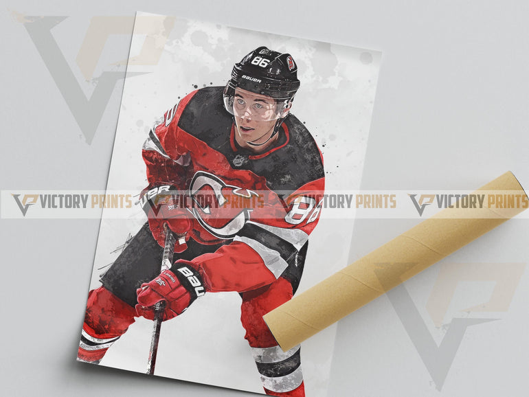Jack Hughes Poster/Canvas | Hockey Man Cave Art, Sports Room Decor, Digital Files Available