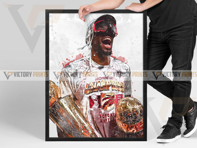 Kawhi Leonard Trophy Champagne Poster/Canvas | Basketball Man Cave Art, Basketball Sports Room Decor, Fan gifts, Digital Download