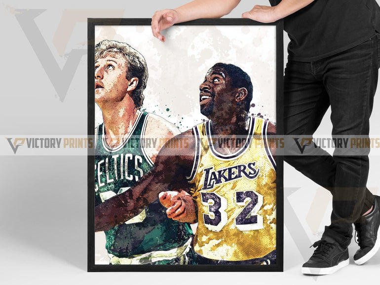 Larry Bird & Magic Johnson Poster/Canvas | Basketball Man Cave Art, Basketball Sports Room Decor, Fan gifts, Digital Download