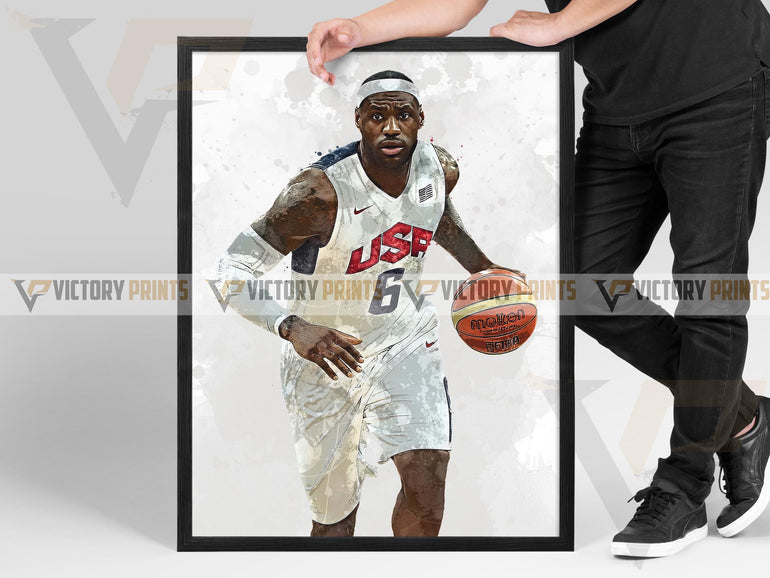 Lebron James Team USA Poster/Canvas | Basketball Man Cave Art, Basketball Sports Room Decor, Fan gifts, Digital Download