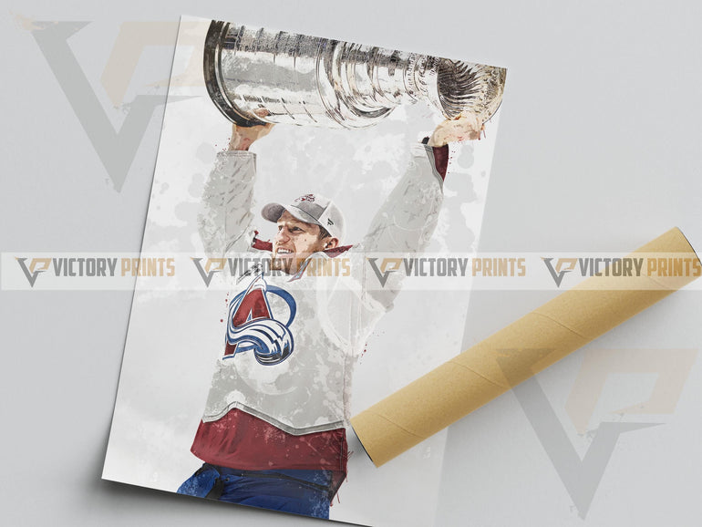 Nathan MacKinnon Cup Champion Poster/Canvas | Hockey Man Cave Art, Sports Room Decor, Digital Files Available