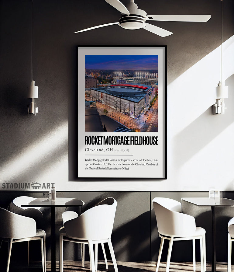 Rocket Mortgage FieldHouse Print, Cleveland Cavaliers Poster/Canvas, Aerial View, Modern Art, Basketball Home Decor, Game Day Keepsake